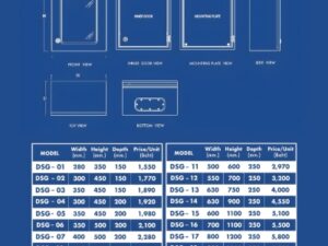 ตู้เหล็กกันนํ้าประตู 2 ชั้นมีกระจก รุ่น DSG มีประตูสองชั้นพร้อมกระจกดูด้านในและ หลังคายื่นออกจากตัวตู้เพื่อกันน้ำไหลเข้าตู้