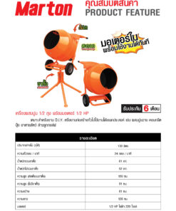MARTON เครื่องผสมปูน 1/2 ถุง พร้อมมอเตอร์ 0.5HP รุ่น MINI (รวมขาตั้ง) ขนาด 120 ลิตร
