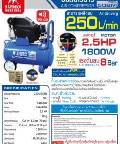 SUMO ปั๊มลมโรตารี่ 2.5HP (50L) รุ่น 50BM สีน้ำเงิน